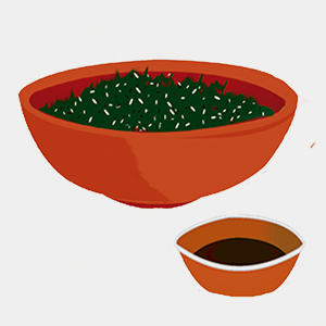 Soup of broth of fish (dashi) and kneads of miso, accompanied of seaweed wakame, tofu and cibulet.
