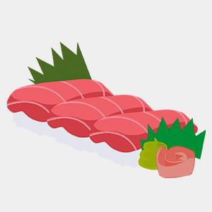 Nigiri: 3 tuna, 3 salmon, 3 Japanese omelet, 3 butter fish and 3 shrimp. Makis: 9 tuna and 9 salmon